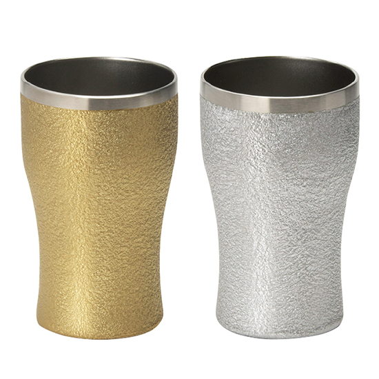 金と銀に輝く贅沢な質感の真空二層タンブラー。持ちやすく手になじむくびれのあるフォルムとなっております。