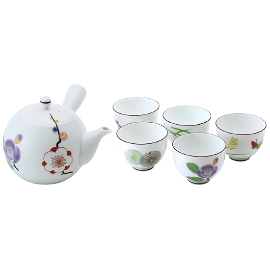 - 商品内容 ●内容:急須 約11×15×10cm、500ml(1P)、湯呑 約φ8×H6cm、180ml(5P) ●材質:磁器 ●生産国:日本製 ●化粧箱:26.5 x 21 x 9.5cm