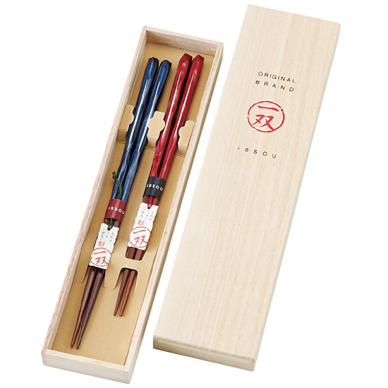 - 商品内容 ●内容:箸(大) 約23cm(1P)、箸(小) 約21cm(1P) ●材質:天然木(鉄木材)・漆塗装 ●生産国:日本製 ●木箱:7 x 27 x 2.5cm