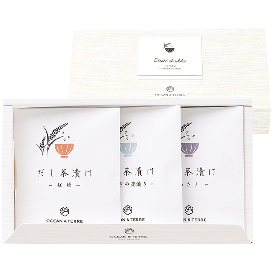 - 商品内容 ●内容:だし茶漬けの素 4.5g×3、紅鮭×1切、うなぎの蒲焼き 13g×1、あさり 30g×1、白煎りごま 1g×3 ●賞味期間:製造日より180日 ●化粧箱:25.5 x 14 x 4.5cm ●アレルゲン:小麦