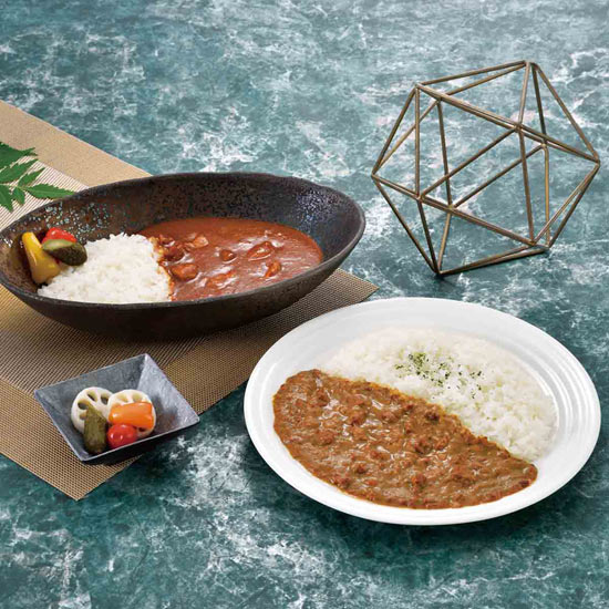 九州産 銘柄鶏「華味鳥」を使用し、水たき料亭「博多華味鳥」料理長が監修したカレーのセットです