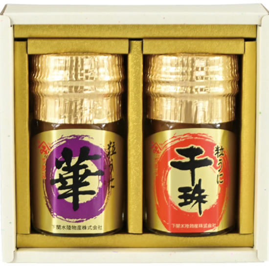 - 商品内容 ●内容:華粒うに×1、干珠粒うに×1 各45g ●賞味期間:製造日より365日 ●化粧箱:15 x 13 x 5.5cm