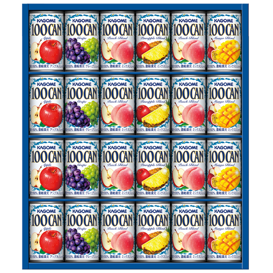 果実のおいしさが活きている100%フルーツジュースのベストセラー「カゴメ100CAN」の詰め合わせ。
