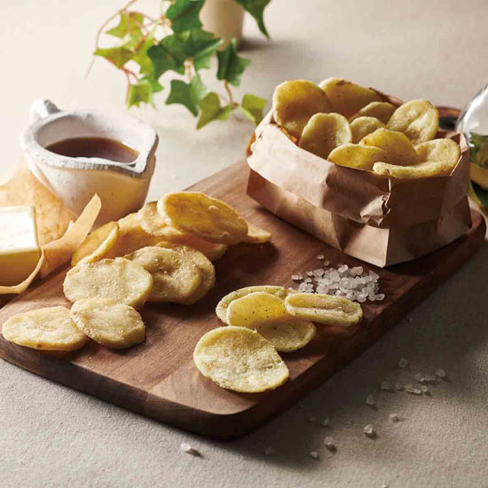 国産じゃがいもを使用した厚切りのポテトチップスで ザクッとした歯ごたえとホクッとしたほどけるリッチな食感とじゃがいも本来の味わいが楽しめる 贈られた人がほっとする、幸せな気分になるカジュアルギフト
