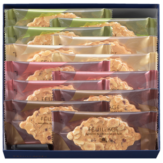 スライスナッツをしきつめてパリッと香ばしく焼き上げたクッキーに、バランスよくチョコレートをサンドしました。チョコレートはナッツに合わせて相性のよいものを厳選。クッキーとナッツとチョコレート、それぞれの味と食感が繊細に重なり合います。