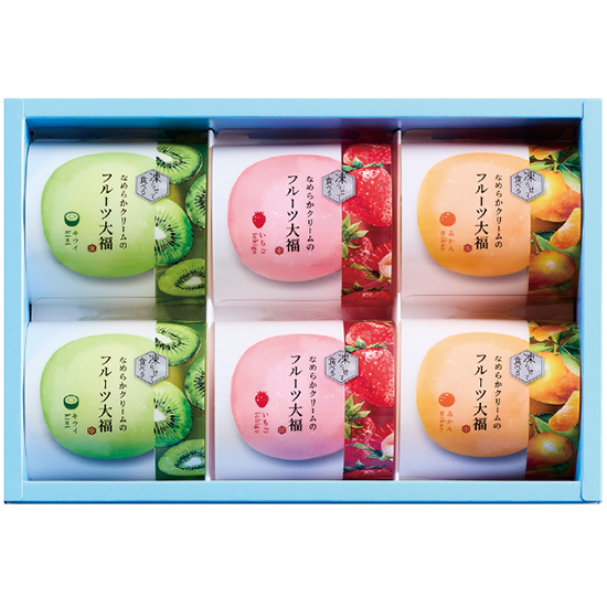 - 商品内容 ●内容:いちご×2、みかん×2、キウイ×2 ●賞味期間:製造日より120日 ●化粧箱:24.1 x 16.2 x 5.1cm ●アレルゲン:乳
