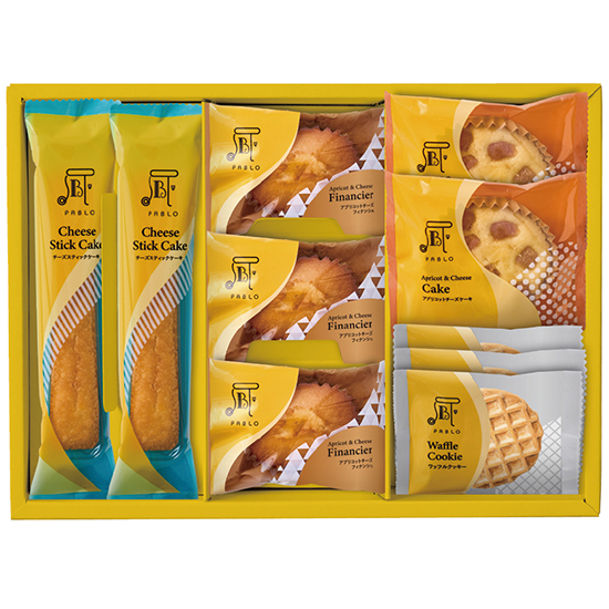 - 商品内容 ●内容:アプリコットチーズフィナンシェ×3、アプリコットチーズケーキ×2、チーズスティックケーキ×2、ワッフルクッキー×3 ●賞味期間:製造日より90日 ●化粧箱:26.8 x 20 x 5cm ●アレルゲン:小麦・たまご・乳