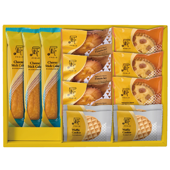 - 商品内容 ●内容:アプリコットチーズフィナンシェ×3、アプリコットチーズケーキ×3、チーズスティックケーキ×3、ワッフルクッキー×4 ●賞味期間:製造日より90日 ●化粧箱:30.5 x 22.8 x 5cm ●アレルゲン:小麦・たまご・乳