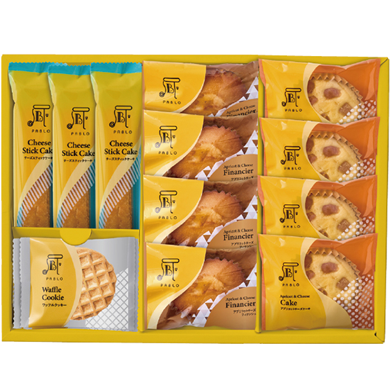 - 商品内容 ●内容:アプリコットチーズフィナンシェ×4、アプリコットチーズケーキ×4、チーズスティックケーキ×3、ワッフルクッキー×4 ●賞味期間:製造日より90日 ●化粧箱:30.5 x 22.8 x 5cm ●アレルゲン:小麦・たまご・乳
