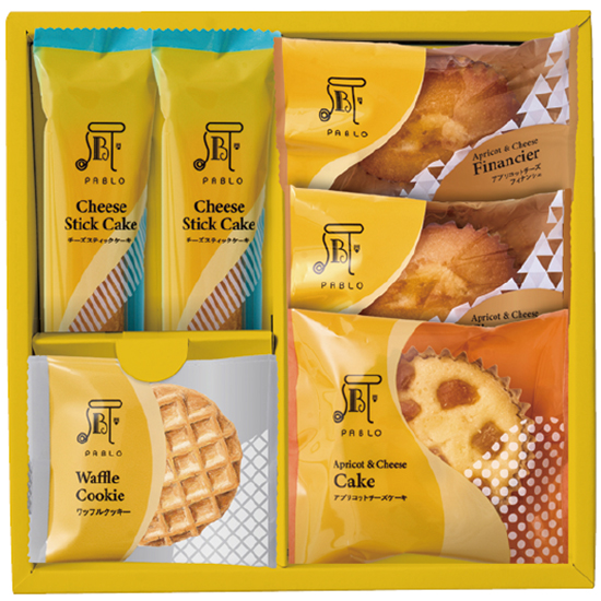 - 商品内容 ●内容:アプリコットチーズフィナンシェ×2、アプリコットチーズケーキ×1、チーズスティックケーキ×2、ワッフルクッキー×2 ●賞味期間:製造日より90日 ●化粧箱:20 x 20 x 5cm ●アレルゲン:小麦・たまご・乳
