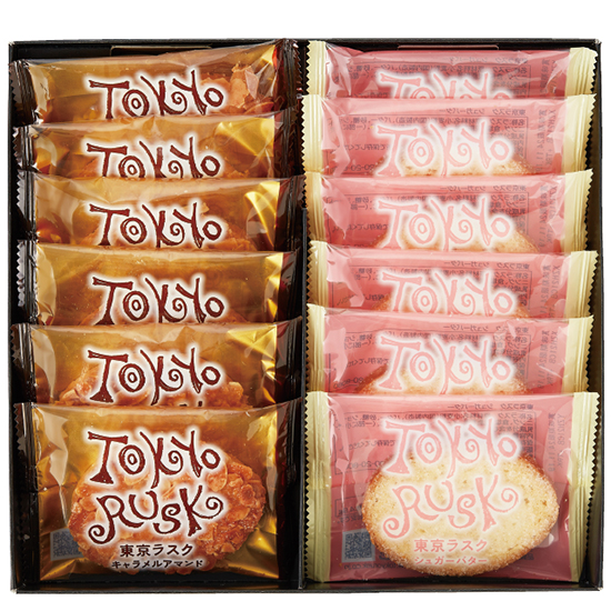 東京ラスクの1番人気キャラメルアマンドとシュガーバターのお詰合せです。